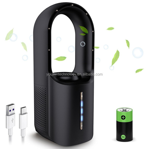 Ventilador recargable portátil sin aspas con enfriador de aire USB de aromaterapia con batería Ventilador LED de escritorio silencioso con luz para el hogar