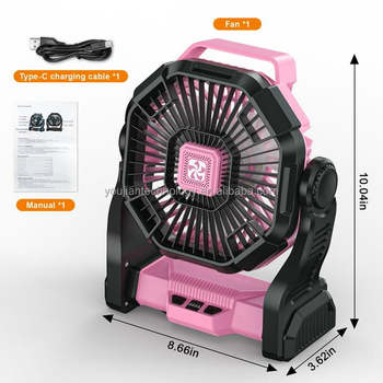Ventilador de Camping portátil recargable, ventilador de refrigeración eléctrico para exteriores para tienda, ventilador colgante USB de emergencia con luz